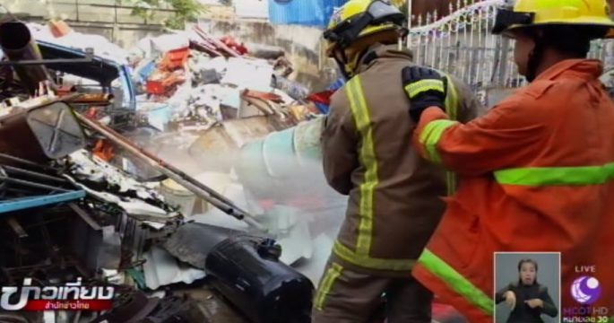 เกิดเหตุถังแก๊สรถยนต์ระเบิดและเพลิงลุกไหม้ ภายในโกดังร้านรับซื้อของเก่า อ.แม่สอด จ.ตาก พบคนงานตัดเหล็กสูบบุหรี่ขณะทำงาน เจ็บสาหัส 1 ราย
