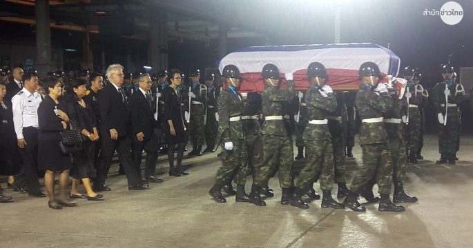 กองเกียรติยศรับศพนายวีรชัย พลาศรัย เอกอัครราชทูตไทย ณ กรุงวอชิงตัน ดี.ซี. สหรัฐ อย่างสมเกียรติ หลังเดินทางถึงแผ่นดินเกิดเมื่อคืนที่ผ่านมา โดยมีนายดอน ปรมัตถ์วินัย รมว.ต่างประเทศ และครอบครัวเอกอัครราชทูตวีรชัย ร่วมในพิธี