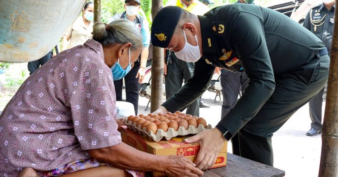 ปลัดกระทรวงกลาโหม มอบถุงยังชีพเพิ่มรอยยิ้มให้ประชาชนในกิจกรรม บ้านวัดประสานใจต้านภัยโควิด19