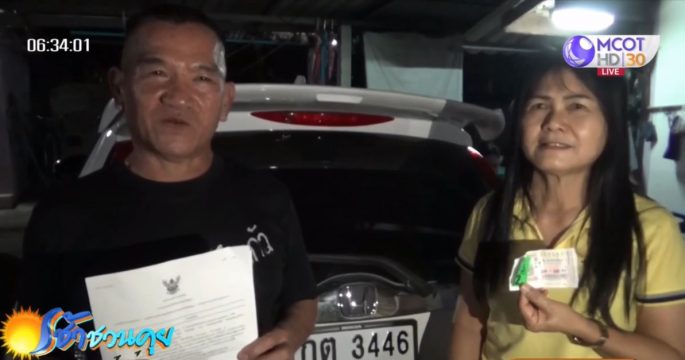 ทะเบียนรถให้โชค รอง สวป.สภ.ภูกามยาว และภรรยา ดวงเฮงถูกลอตเตอรี่ รางวัลที่ 1 รับ 12 ล้าน แถมพ่วงด้วยรางวัลเลขท้าย 2 ตัว อีก 2 ใบ