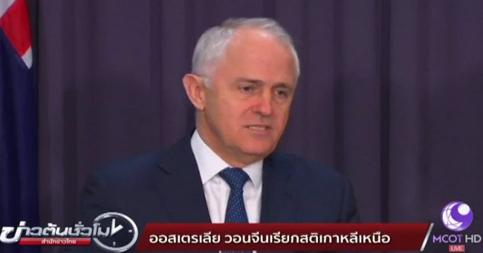 นายกรัฐมนตรีมัลคอล์ม เทิร์นบูลของออสเตรเลีย เรียกร้องจีนให้ใช้อิทธิพลที่มีอยู่เรียกสติเกาหลีเหนือ ยุติการทดสอบขีปนาวุธและการทดลองนิวเคลียร์