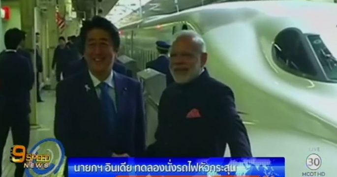 นายกรัฐมนตรีอินเดียทดลองนั่งรถไฟหัวกระสุนที่ญี่ปุ่น หลังปีที่แล้วญี่ปุ่นเคยเสนอเงินกู้ดอกเบี้ยต่ำให้ใช้ในการก่อสร้างเส้นทางรถไฟหัวกระสุนสายแรกของอินเดีย