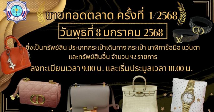 ปปง.ขายทอดตลาดทรัพย์สินประเภทกระเป๋า นาฬิกาข้อมือ แว่นกันแดด รองเท้า และทรัพย์สินอื่น จำนวน 92 รายการ ในวันที่ 8 มกราคมนี้