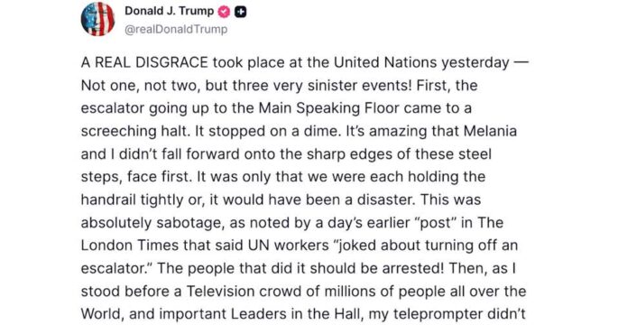 ‘ทรัมป์’ ให้หน่วยอารักขาสอบเหตุบันไดเลื่อนขัดข้องที่ยูเอ็น