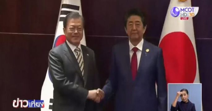 ผู้นำญี่ปุ่น และเกาหลีใต้ ได้พบหารือกันแบบทวิภาคีเป็นครั้งแรกในรอบ 15 เดือน หลังจากมีความบาดหมางกัน จนทั้งสองฝ่ายต้องตอบโต้ด้วยมาตรการทางการค้า