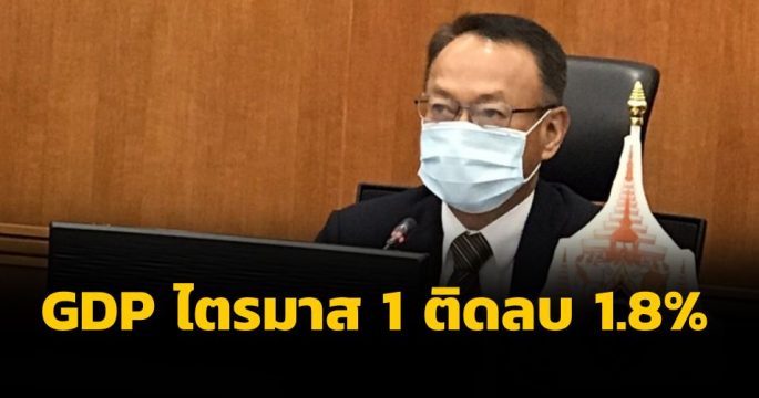 สศช.เผยตัวเลขจีดีพีไตรมาส 1/63 ติดลบ 1.8% โดยเป็นการติดลบครั้งแรกนับตั้งแต่ไตรมาส 1 ปี 57 ขณะที่ทั้งปีคาดจะติดลบ 5-6%