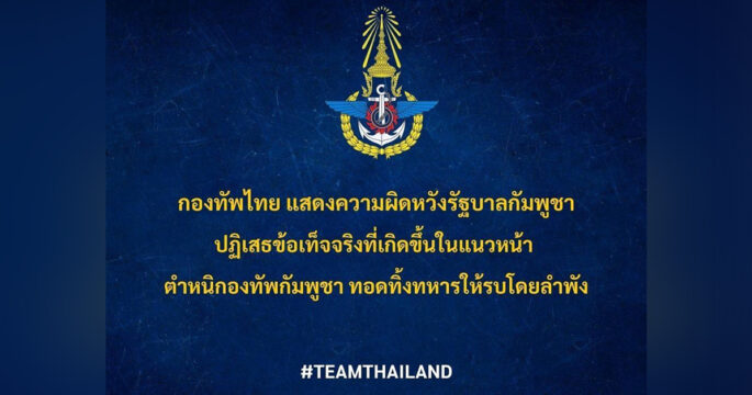 กองทัพภาค2 31 ก.ค.-ทภ.2 เผยเขมรเพิ่มเติมกำลังตลอดแนวชายแดน ผิดข้อตกลง ช่องอานม้า-ภูมะเขือ-สัตตะโสม-ปราสาทโดนตวล-ภูผี-ช่องจอม-ช่องสายตะกู อ.บ้านกรวด พบ UAV ไม่ทราบฝ่าย บินตรวจการณ์ที่ตั้งกำลังฝ่ายไทย เมื่อวันที่ 31 ก.ค.68 ศูนย์ปฏิบัติการกองทัพภาคที่ 2 สรุปสถานการณ์การสู้รบตามแนวชายแดนไทย-กัมพูชา ประจำวันที่ 31 กรกฎาคม 2568 (ณ เวลา 10.00 น.) ว่า ปรากฏความเคลื่อนไหวของกำลังทหารกัมพูชา ดังนี้ 1.ตรวจพบการเพิ่มเติมกำลังและเสริมความมั่นคงของกำลังประเทศกัมพูชา ในพื้นที่ตลอดแนวชายแดนไทย – กัมพูชา2.ตรวจพบการใช้อากาศยานไร้คนขับ (โดรนไม่ทราบฝ่าย/ไม่ทราบชนิด) บินตรวจการณ์ที่ตั้งการวางกำลังของฝ่ายเราในหลายพื้นที่ สำหรับการตรวจพบในพื้นที่ชายแดน ได้แก่ ช่องอานม้า อ.น้ำยืน จ.อุบลราชธานี, พื้นที่ภูมะเขือ, สัตตะโสม, ปราสาทโดนตรวล, ภูผี อ.กันทรลักษ์ จ.ศรีสะเกษ, ช่องจอม อ.กาบเชิง จ.สุรินทร์ และ ช่องสายตะกู อ.บ้านกรวด จ.บุรีรัมย์ 3.การดำเนินการต่อผู้ถูกควบคุมตัว ซึ่งเป็นทหารกัมพูชาที่ยอมจำนนเนื่องจากกระสุนหมดในพื้นที่ ช่องซำแต […]