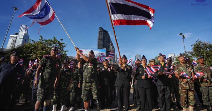 กทม. 4 ส.ค.-ทหารผ่านศึก พร้อมใจ “รวมพลังปกป้องแผ่นดิน” โบกธงไทยร้องเพลงชาติ ส่งใจถึงแนวหน้า สดุดีนักรบผู้กล้า ปกป้องเอกราชและรักษาอธิปไตยของชาติ วันนี้ (4ส.ค.68) องค์การสงเคราะห์ทหารผ่านศึก โดย พลเอก เดชนิธิศ เหลืองงามขำ ผู้อำนวยการองค์การสงเคราะห์ทหารผ่านศึก นำ ทหารผ่านศึก ในสมรภูมิต่างๆ 2,000 นาย พร้อมด้วยเจ้าหน้าที่องค์การสงเคราะห์ทหารผ่านศึก ทำกิจกรรมรวมพลังปกป้องแผ่นดินและกล่าวสดุดีนักรบผู้กล้า ทั้งทหาร ตำรวจ อาสาสมัครทหารพราน ตำรวจตระเวนชายแดน และพลเรือน ที่เสียสละปกป้องเอกราชและรักษาอธิปไตยของชาติ รวมทั้งประชาชนที่เสียชีวิต จากสถานการณ์การสู้รบบริเวณชายแดนไทย – กัมพูชา โดยร่วมร้องเพลงชาติไทย และร่วมกันโบกธงชาติไทย กลางอนุสาวรีย์ชัยสมรภูมิ แ ทั้งนี้สำนักงานสงเคราะห์ทหารผ่านศึกส่วนภูมิภาคทั้ง 27 ยังจัดกิจกรรมนี้ขึ้นพร้อมเพรียงกันทั่วประเทศด้วย.-313.-สำนักข่าวไทย