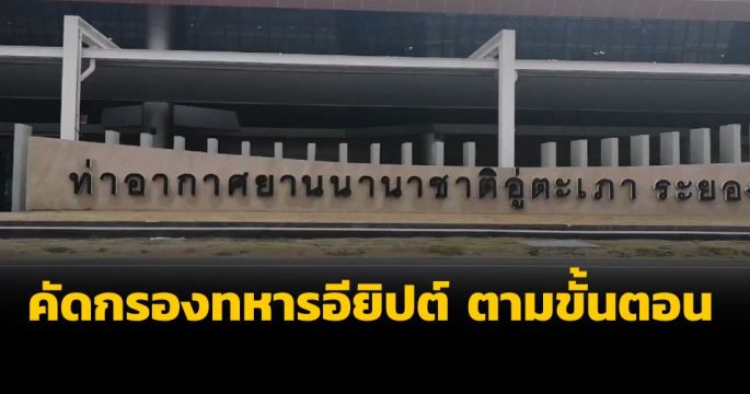 ผอ.สนามบินอู่ตะเภา แจงขั้นตอนคัดกรองโรค ก่อนพบทหารอียิปต์ ติดเชื้อ ยันทำตามขั้นตอน PUI ในการตรวจคัดกรอง พร้อมเผยทหารอียิปต์ที่ติดโควิด หนีออกมาเอง