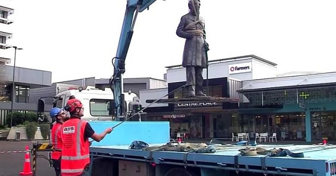 สภาเมืองแฮมิลตัน บนเกาะเหนือของนิวซีแลนด์เคลื่อนย้ายรูปปั้นนายทหารเรืออังกฤษที่ถูกกล่าวหาว่าสังหารชนพื้นเมืองเมารีช่วงคริสต์ทศวรรษที่ 19