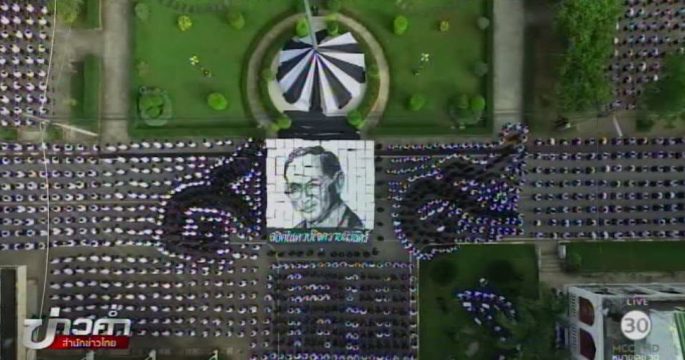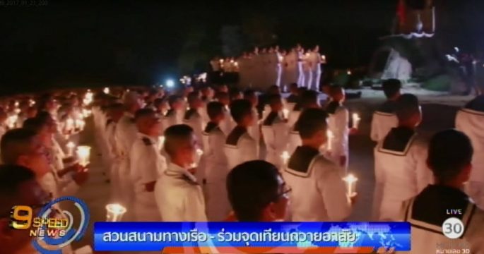 ทหารเรือและบุคลากรศิริราช ซ้อมแปรอักษรเลข ๙ และบรรเลงเพลงพระราชนิพนธ์ เทิดพระเกียรติในโอกาสครบรอบ 30 วันแห่งการสวรรคต
