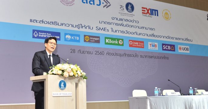กรุงเทพ ฯ 218 ก.ย. – ธปท. จับมือ กระทรวงอุตสาหกรรม และ 8 แบงก์ ดึงเอสเอ็มอี เข้าโครงการป้องกันความเสี่ยงอัตราแลกเปลี่ยน ให้สิทธิ์ล็อกเรตล่วงหน้า สนับสนุนค่าธรรมเนียม 30,000 บาท ต่อราย ธนาคารแห่งประเทศไทย (ธปท.) ร่วมกับกระทรวงอุตสาหกรรม สานักงานส่งเสริมวิสาหกิจ ขนาดกลางและขนาดย่อม (สสว.) ธนาคารเพื่อการส่งออกและนำเข้าแห่งประเทศไทย สมาคมธนาคารไทย และธนาคารพาณิชย์ที่ร่วมโครงการ 8 แห่ง คือ ธ.กรุงเทพ ธ.กรุงไทย ธ.กรุงศรีอยุธยา ธ.กสิกรไทย ธ.ซีไอเอ็มบีไทย ธ.ทหารไทย ธ.ไทยพาณิชย์ และ ธ.ยูโอบี เปิดตัวโครงการภายใต้มาตรการเพิ่มขีดความสามารถและส่งเสริมความรู้ให้กับเอสเอ็มอี ในการป้องกันความเสี่ยงจากอัตราแลกเปลี่ยน นายวิรไท สันติประภพ ผู้ว่าการธนาคารแห่งประเทศไทย (ธปท.) เปิดเผยว่าความผันผวนของอัตราแลกเปลี่ยนนั้น ไม่ได้เป็นผลจากปัญหาของค่าเงินบาทเป็นหลัก แต่มาจากการเปลี่ยนแปลงของเงินสกุลหลักของโลก ดังนั้นการทำประกันความเสี่ยงจากอัตราแลกเปลี่ยนนั้นเป็นสิ่งจำเป็นและสำคัญ ดังนั้น ผู้ประกอบการเอสเอ็มอีจะต้องสร้างความรู้ ความเข้าใจในการใช้ และเข้าถึงเครื่องมือในการบริหารความเสี่ยงจากอัตราแลกเปลี่ยน สำหรับเอสเอ็มอีที่เข้าข่ายตามคุณสมบัติของโครงการ […]