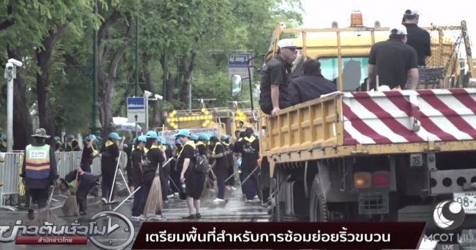 เจ้าหน้าที่ กทม. ทหาร ตำรวจ จิตอาสา กว่า 1,600 คน เข้าทำความสะอาดพื้นที่โดยรอบพระบรมมหาราชวัง เตรียมความพร้อมสำหรับซ้อมย่อยริ้วขบวนเช้าวันพรุ่งนี้