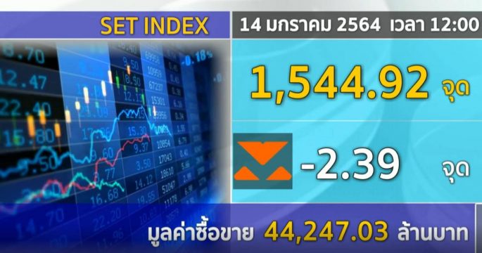 หุ้นไทย เช้านี้ เปิดมาล่วงกว่า 10 จุด สวนทางกับตลาดหุ้นในภูมิภาค ล่าสุด ดัชนีช่วงเที่ยง 1,544.92 จุด ลดลงมา 2.39 จุด มูลค่าซื้อขาย 44,247.03 ล้านบาท