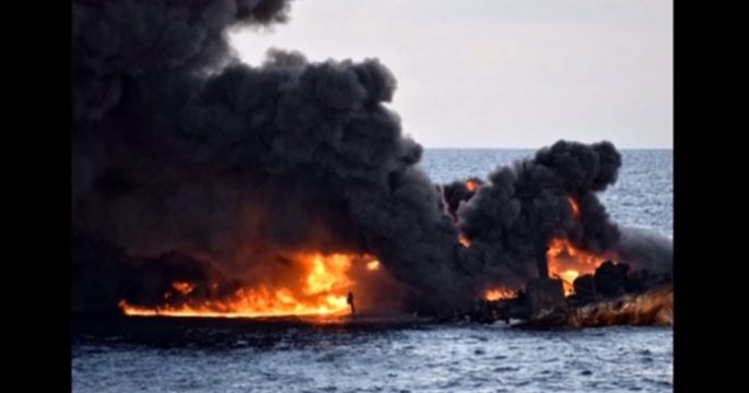 น้ำมันจากเรืออิหร่านล่มไหลลงทะเลจีนตะวันออก