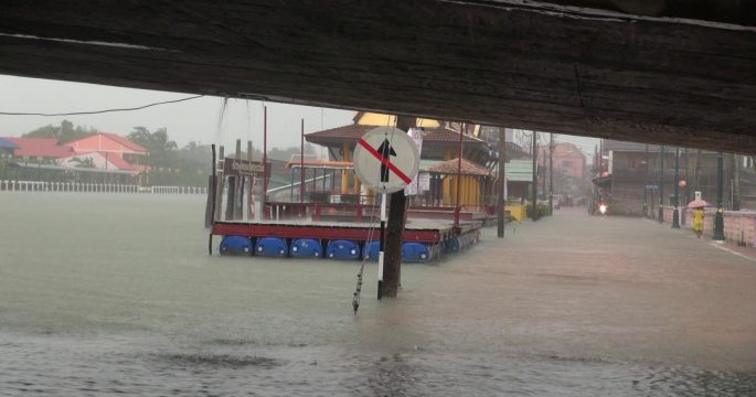ทะเลสาบสงขลาน้ำเอ่อท่วมริมฝั่ง 3 อำเภอคาบสมุทรสทิงพระอีกครั้ง หลังมีฝนตกหนักต่อเนื่องผสมกับน้ำจากพัทลุงและนครศรีธรรมราชไหลมารวมกัน