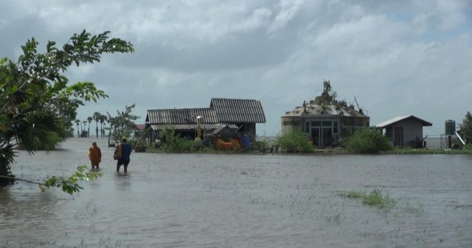 น้ำท่วมล้อมที่พักสงฆ์ริมทะเลสาบสงขลานานนับเดือน