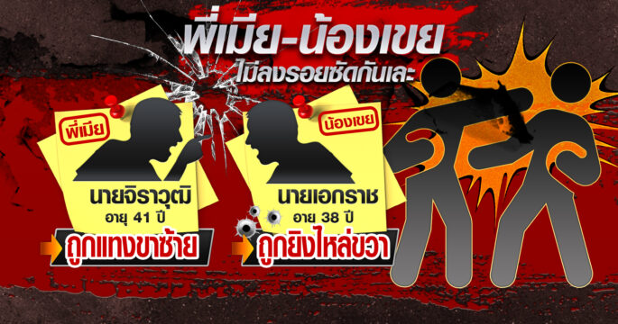 พี่เมีย-น้องเขย ทะเลาะวิวาทซัดกันเดือด ทั้งยิงทั้งแทงบาดเจ็บทั้งคู่ ต้องเรียกรถพยาบาล ไปกันคนละคัน