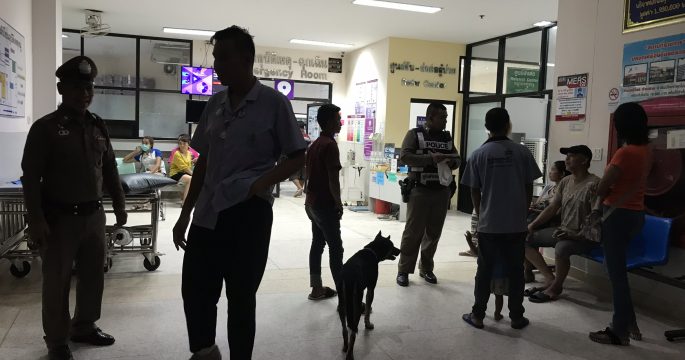 อีกแล้ว! 3 คนร้ายบุกห้องฉุกเฉิน รพ.เทพรัตน์นครราชสีมา คว้ากรรไกรเครื่องมือแพทย์เข้าทำร้ายคู่อริ ที่แพทย์พยาบาลกำลังให้การช่วยเหลือ หลังทั้งสองฝ่ายมีเรื่องทะเลาะวิวาทกันที่ร้านเหล้ายาดอง