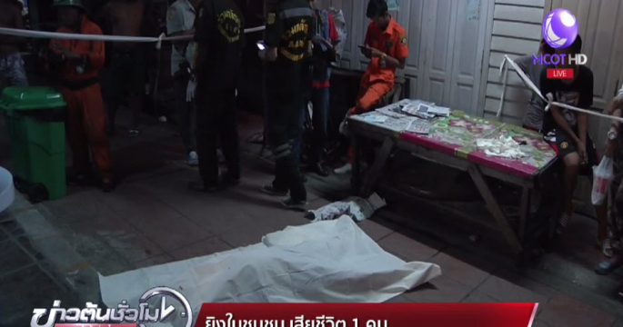 ตำรวจพิสูจน์หลักฐาน เข้าตรวจสอบศพ นายพันธ์ณรงค์ อ้นชิน อายุ 32 ปี หลังถูกนายสมชาย จงกาญจนาสุนทร อายุ 61 ปี คนขับเรือท่องเที่ยวยิงเสียชีวิต ในชุมชนบ้านบุ ซอยจรัญสนิทวงศ์ 32