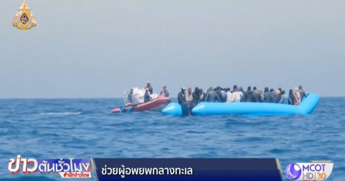เรือของซี-อาย องค์กรช่วยเหลือโดยไม่หวังผลกำไร จากเยอรมนี ให้การช่วยเหลือผู้อพยพที่ลักลอบเดินทางจากลิเบียไปยังยุโรป จำนวน 64 คน กลางทะเลเมดิเตอร์เรเนียน