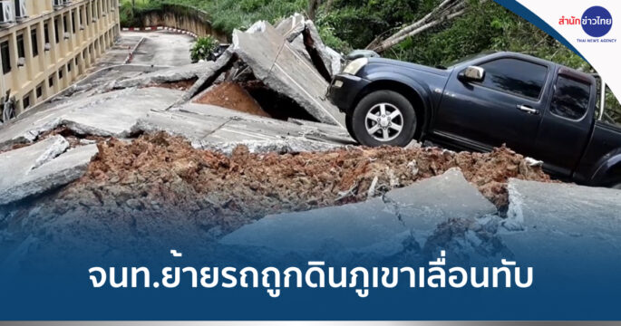 ดินภูเขาเลื่อนไหลทับรถ เจ้าหน้าที่ย้ายออกได้ 5 คัน