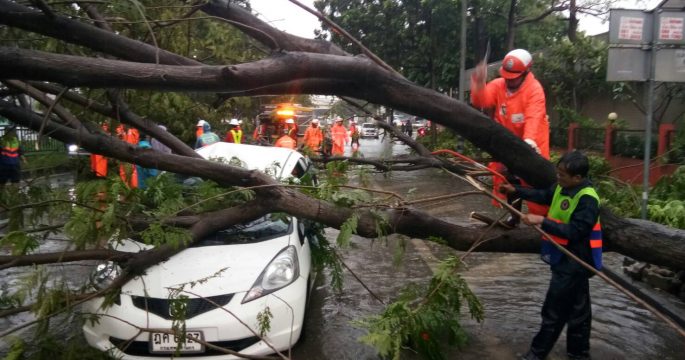 ฝนถล่มกรุง ต้นไม้ล้มกีดขวางการจราจรและล้มทับรถยนต์หลายจุด