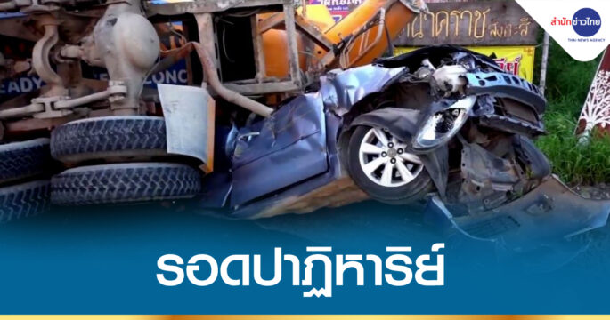 รถเทรลเลอร์เกี่ยวสายไฟหม้อแปลงล้มทับเก๋ง คนขับรอดหวุดหวิด