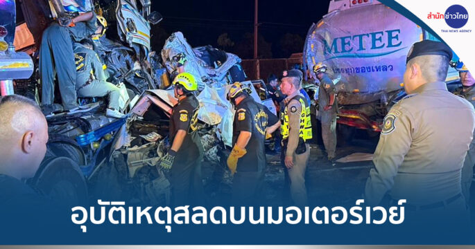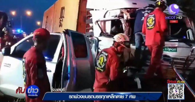 เกิดอุบัติเหตุใหญ่ช่วงกลางดึก บนมอเตอร์เวย์ สาย 7 มุ่งหน้าชลบุรี รถเทรลเลอร์ 2 คัน กับเอสยูวีอีก 1 คัน คนในรถเอสยูวี เสียชีวิต 8 ราย
