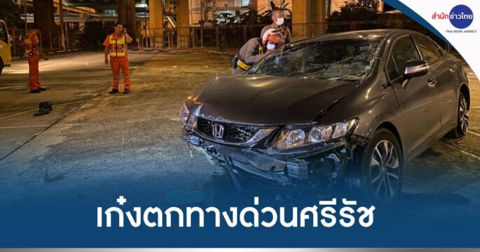 เก๋งตกทางด่วนศรีรัช สูง 15 เมตร คนขับบาดเจ็บ