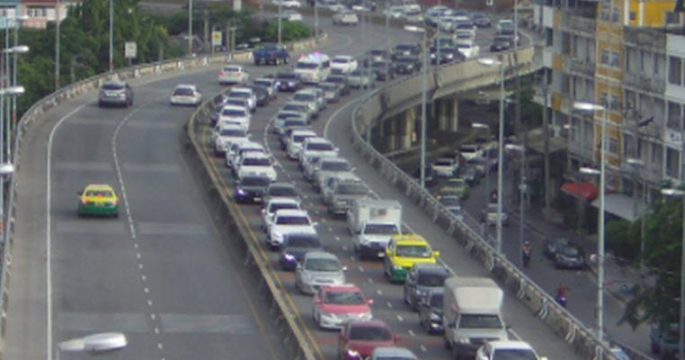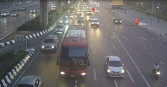 สวพ.FM 91 รายงานจราจรเช้าวันจันทร์ ถ.รัชดาภิเษก ขาเข้า มุ่งหน้าแยกประชานุกูล การจราจรติดขัด ท้ายสะสมอยู่ที่ทางลงสะพานพระราม 7