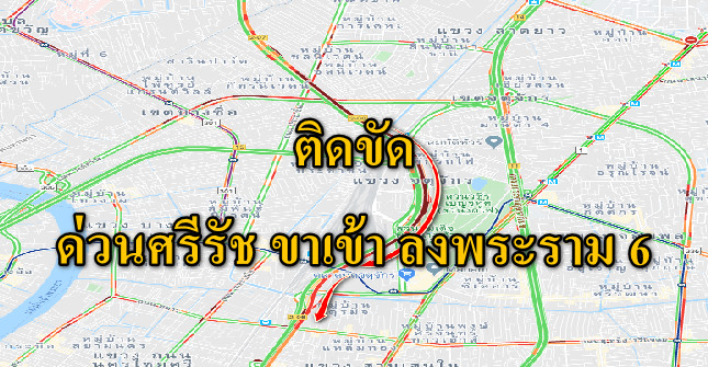 จราจรเช้าวันพฤหัสบดี ทางพิเศษศรีรัช ลงพระราม6 คิดขัดมาก ท้ายแถวสะสมด่านรัชดา