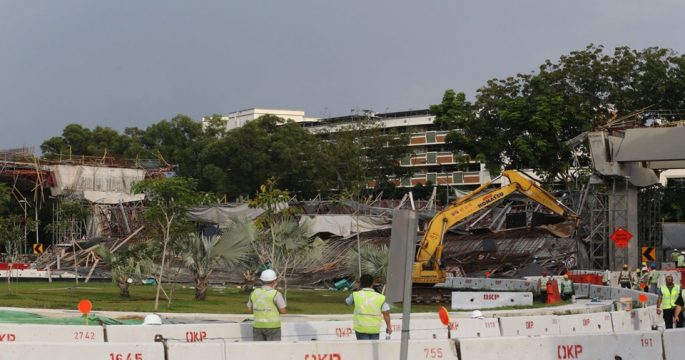 เกิดเหตุทางหลวงยกระดับที่อยู่ระหว่างการก่อสร้างในสิงคโปร์พังถล่ม คร่าชีวิตคนงาน 1 คน บาดเจ็บ 10 คน นับเป็นอุบัติเหตุการก่อสร้างที่แทบไม่เคยเกิดขึ้นมาก่อน