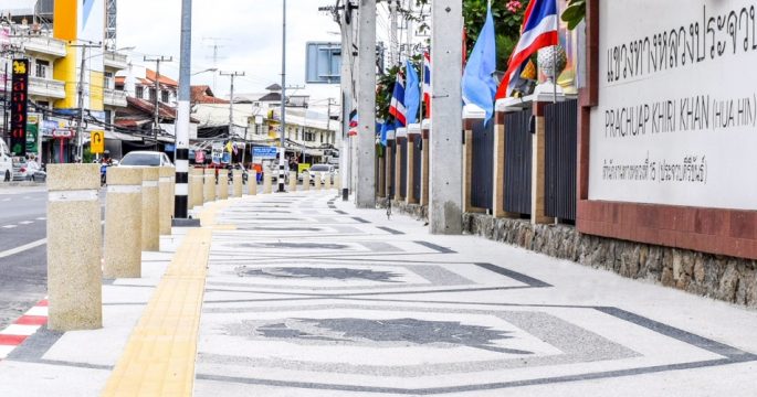 กรมทางหลวงปรับปรุงทางเท้าเมืองหัวหิน พร้อมติดตั้งเสากันรถและทางลาด สนับสนุนการท่องเที่ยว ส่งเสริมคุณภาพชีวิตผู้พิการ