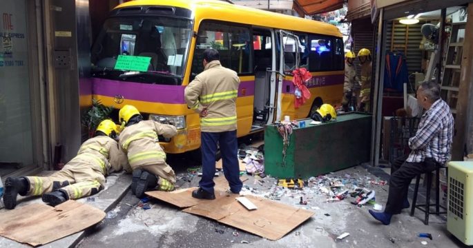 มีผู้เสียชีวิต 2 คนจากรถบัสนักเรียนพุ่งไถลขึ้นทางเท้าในย่านผู้คนหนาแน่นที่ฮ่องกง คนที่เดินผ่านถูกชนทับจนติดอยู่ใต้ท้องรถ บาดเจ็บอีก 13 คน