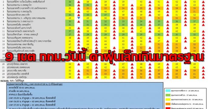 วันนี้ 9 เขต กทม.ค่าฝุ่นเล็กเกินมาตรฐาน เริ่มมีผลสุขภาพ