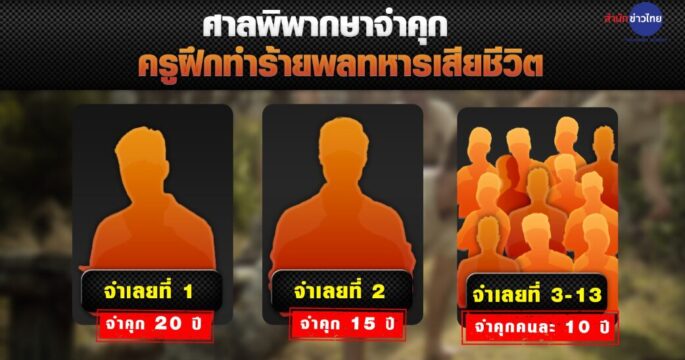ศาลพิพากษาจำคุก 20 ปี ครูฝึกทำร้ายพลทหารเสียชีวิต