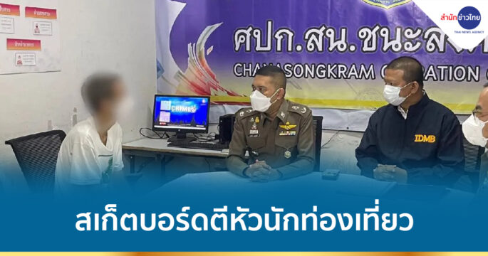 ชุดลาดตระเวนออนไลน์ สืบนครบาล ร่วมกับ สน.ชนะสงคราม จับหนุ่มใช้สเก็ตบอร์ดตีศีรษะนักท่องเที่ยวชาวแคนาดาบาดเจ็บ