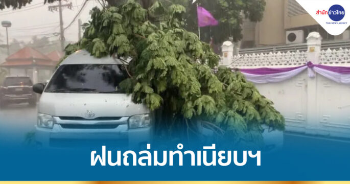 ฝนถล่ม ทำเนียบฯ ไม้ใหญ่กิ่งหักทับรถตู้รับส่งนักเรียนที่มารับทุนกับ “นายกฯ” โชคดีไม่มีผู้ได้รับบาดเจ็บ