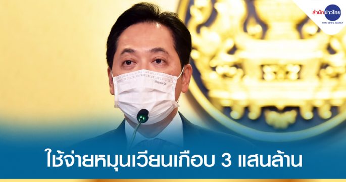โฆษกรัฐบาล เผยโครงการ “เราชนะ” และ “ม33 เรารักกัน” มีมูลค่าการใช้จ่ายหมุนเวียนในระบบเศรษฐกิจแล้วเกือบ 300,000 ล้านบาท จากการใช้จ่ายของประชาชนกว่า 41 ล้านคน