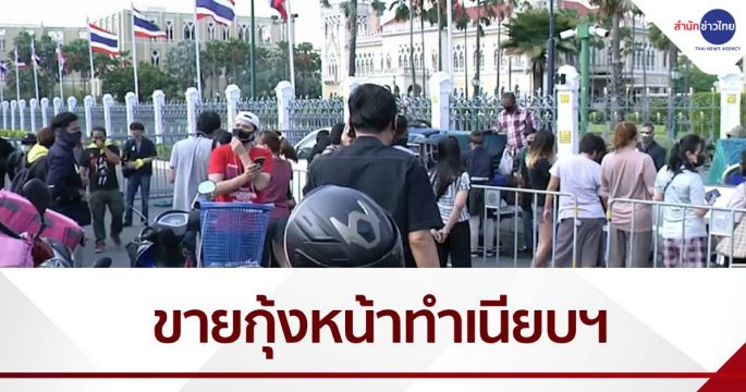 กลุ่ม We Volunteer หรือ “WeVo” นำเกษตรกรบ่อกุ้งจังหวัดนครปฐม พร้อมกุ้งขาวกว่า 1,000 กิโลกรัม มาขายหน้าทำเนียบรัฐบาล หลังได้รับผลกระทบจากการแพร่ระบาดโควิด-19 แพกุ้งในจังหวัดสมุทรสาคร