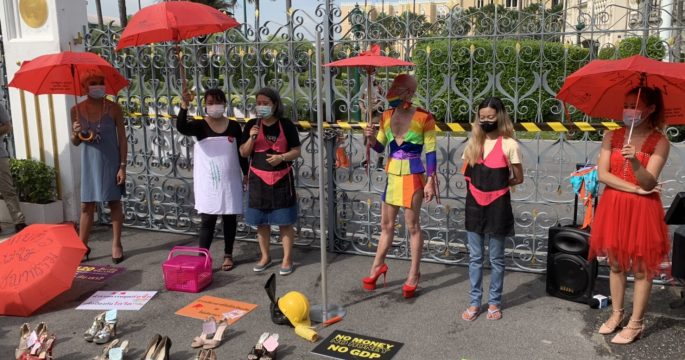 ม็อบคนกลางคืน ขนส้นสูงบุกทำเนียบ เรียกร้องรัฐบาลขอ เยียวยา 5,000 บาท หลังถูกสั่งปิดกิจการ