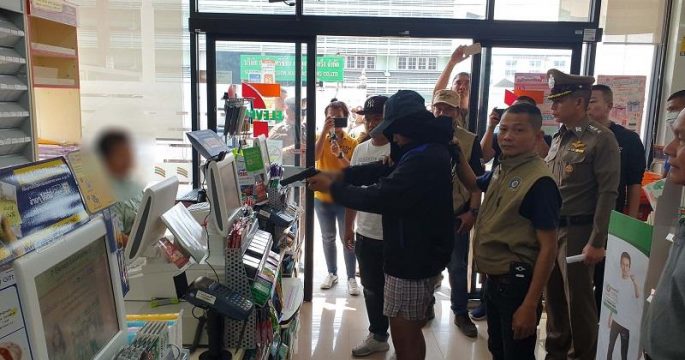 คุมตัวทำแผนใช้ปืนปลอมจี้ร้านเซเว่นฯ ย่านสมุทรสาคร