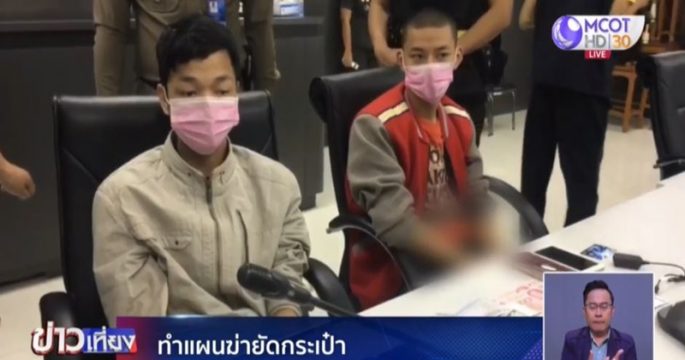 ตำรวจคุม 2 ผู้ต้องหาฆ่ามัดมือมัดเท้าหนุ่มชาวจีนยัดกระเป๋าเดินทางทิ้งแม่น้ำปิง จ.กำแพงเพชร ไปทำแผนประกอบคำรับสารภาพที่บ้านพักในเมืองพัทยา ส่วนสาเหตุเกิดจากหักหลังธุรกิจพนันออนไลน์