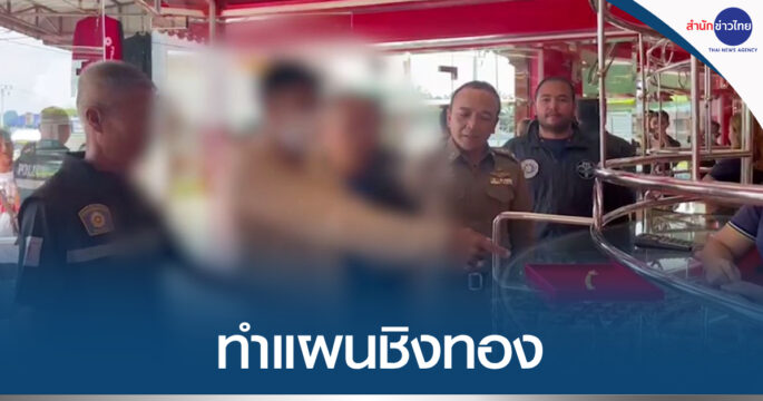 ตำรวจสุราษฎร์ฯ คุมตัวผู้ต้องหาชิงสร้อยทอง 3 เส้น น้ำหนัก 3 บาท ทำแผนประกอบคำรับสารภาพ เจ้าตัวอ้างถูกแก๊งคอลเซ็นเตอร์หลอกโอนเงินจนเป็นหนี้