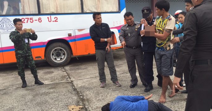ตำรวจมหาสารคามคุมตัวคนขับรถทัวร์ทำแผนประกอบคำรับสารภาพฆ่าชิงทรัพย์ผู้โดยสาร เมื่อ 3 วันที่ผ่านมา