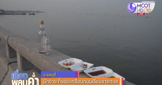 มักง่าย! ทิ้งขยะเกลื่อนถนนเลียบชายทะเลเมืองชลบุรี ฝากนักท่องเที่ยวช่วยกันรักษาความสะอาด กินแล้วก็ต้องเก็บไปทิ้งให้ถูกที่