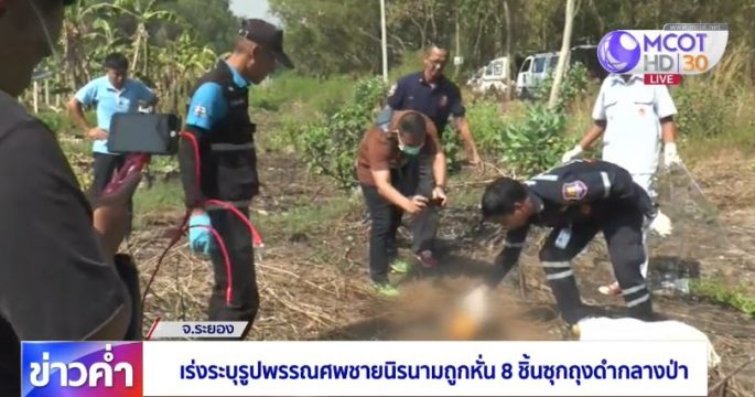 ศพชายนิรนามที่ถูกแยกชิ้นส่วนซุกถุงดำทิ้งในป่าที่ ต.เนินพระ อ.เมืองระยอง ขณะนี้ยังไม่สามารถระบุได้ว่าเป็นใคร และยังไม่พบศีรษะ โดยแนวทางการสืบสวนเพื่อระบุตัวผู้เสียชีวิต จะใช้รอยสักรูป “ไม้เลื้อย” เป็นกุญแจสำคัญ