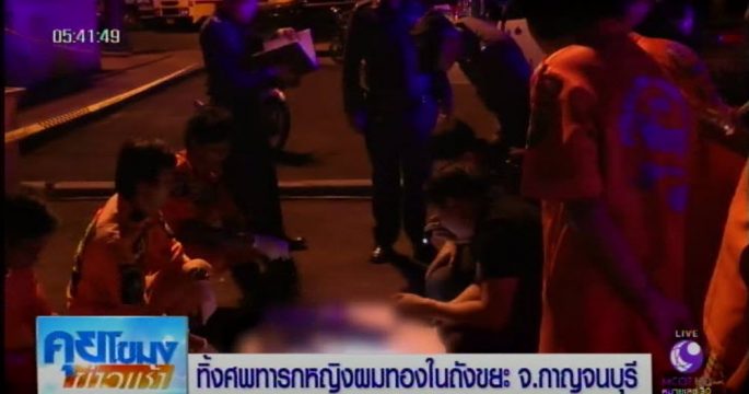 พบศพทารกน้อยเพศหญิง ผมสีทอง จมูกโด่ง ในถังขยะหลังสถานีขนส่งกาญจนบุรี