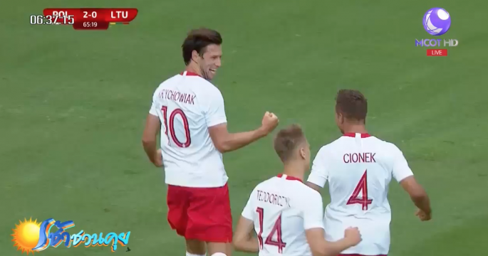 โรเบิร์ต เลวานดอฟสกี กัปตันทีมชาติโปแลนด์ยิง 2 ประตูในเกมอุ่นเครื่องกับลิทัวเนีย ก่อนนั่งเครื่องบินสู่รัสเซีย
